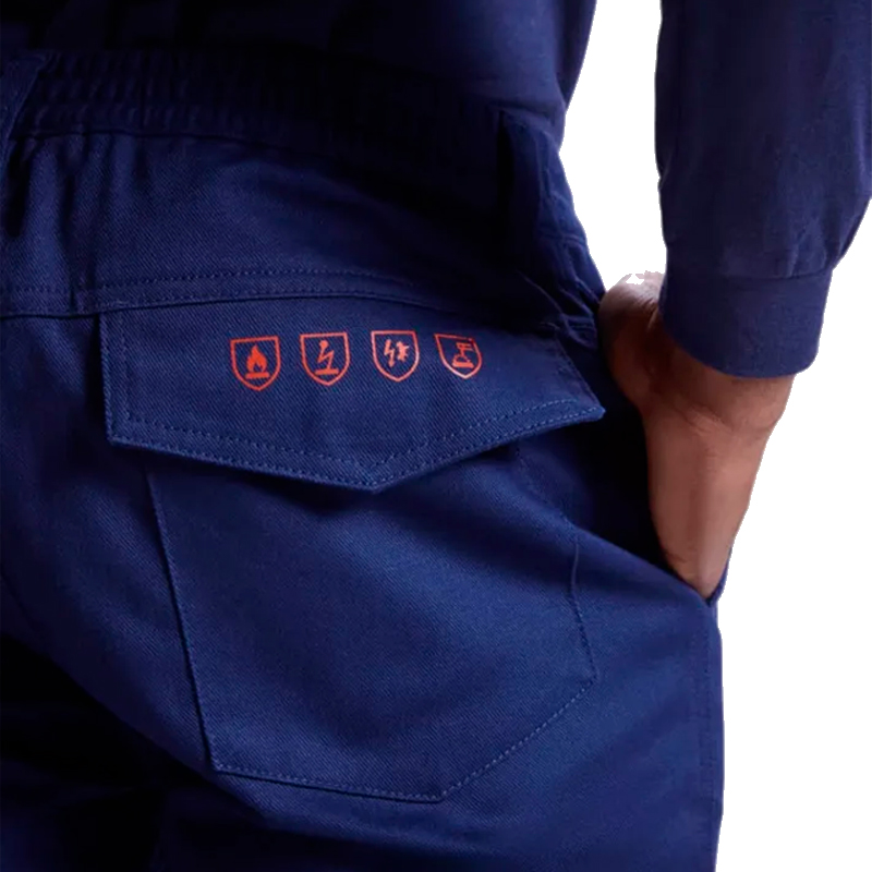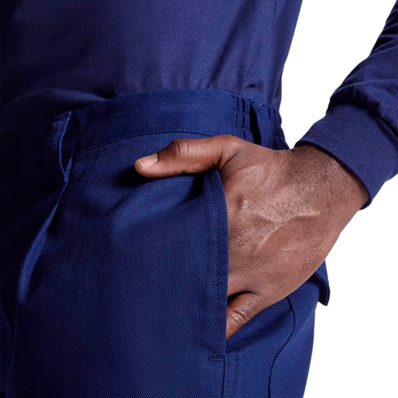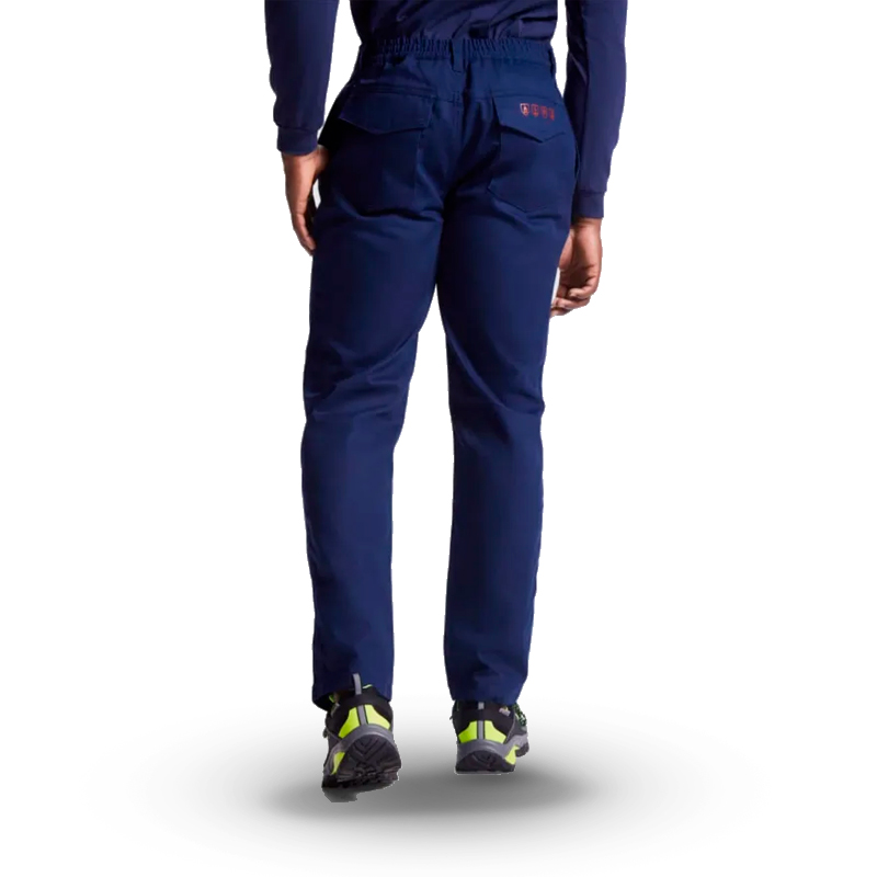 Pantalón largo en tejido ignifugo con cinturilla ajustable elástica en la parte trasera. Dos bolsillos frontales. Bolsillo trasero con tapeta y cierre velcro y Bolsillos laterales con tapeta y cierre velcro.